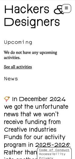 Hackers & Designers βΌ an amsterdam based interdisciplinary collective that organizes events and summer camps around experimental technologies for new ways of publishing and designing