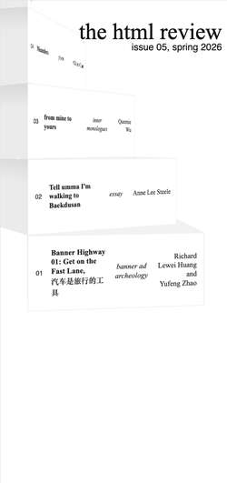 HTML Review βΌ the HTML Review is an annual journal of literature made to exist on the web, check out their about page for great links to other spaces