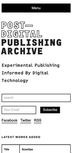 Post-Digital Publishing Archive βΌ archive keeping trace of experiences in the fields of art and design that explore the relationships between publishing and digital technology