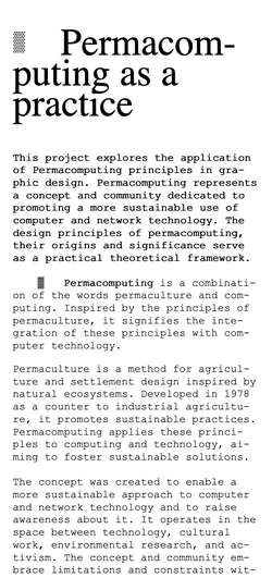 Permacomputing as a practice for digital design βΌ experiments demonstrating how possibilities in graphic design can be expanded to achieve environmentally conscious results
